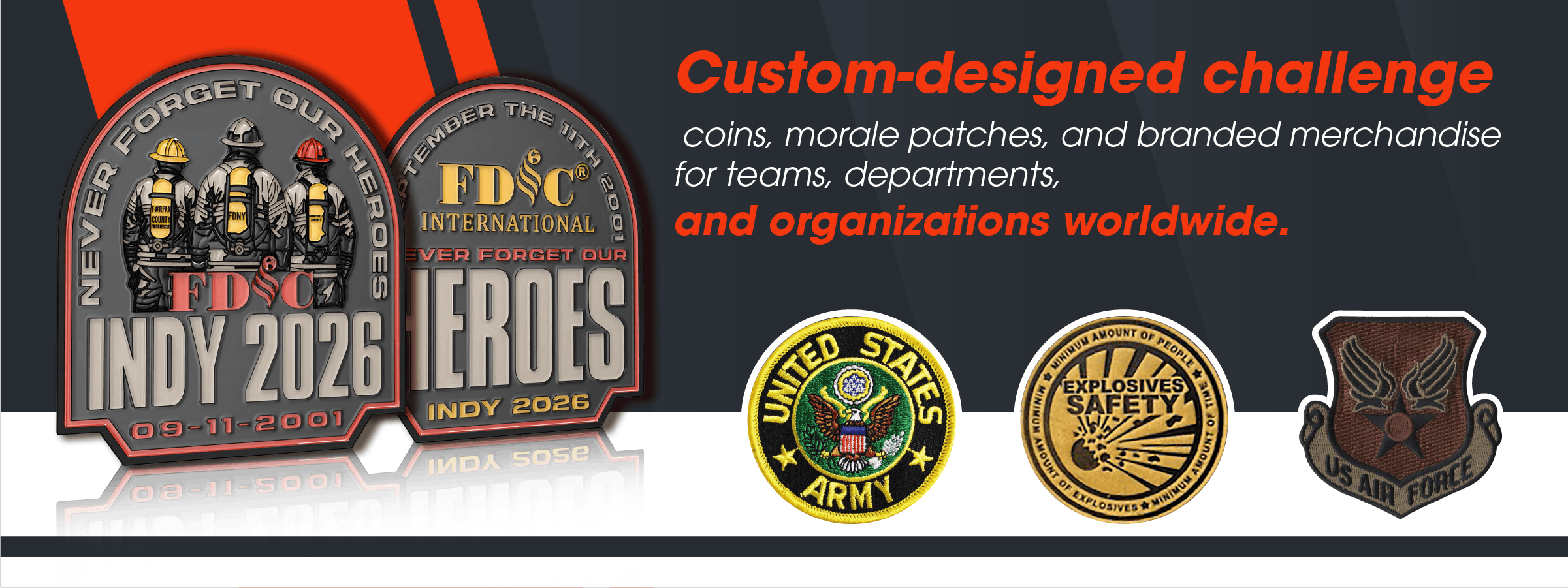 In addition to coins and patches we help organizations create cohesive branded promotional merchandise that complements thier mission. From apparel and bags to notebooks and event giveaways, we ensure every item feels intentional - not generic.
